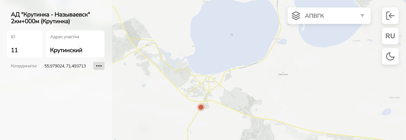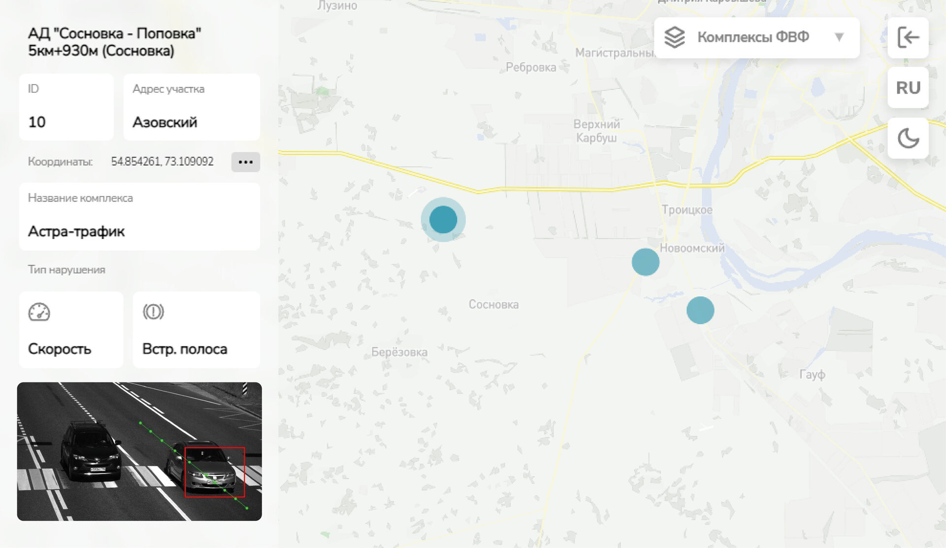 Интерактивный слой, на котором отображены точки месторасположений устройств весогабаритного контроля